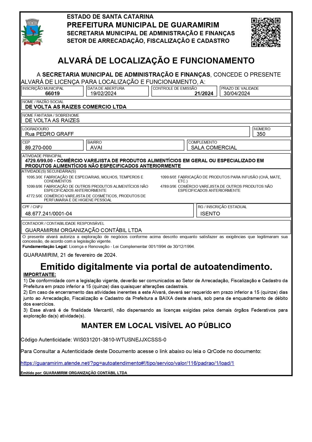 alvará de funcionamento, e estamos registrados sob o CNPJ 👉48.677.241/0001-04.