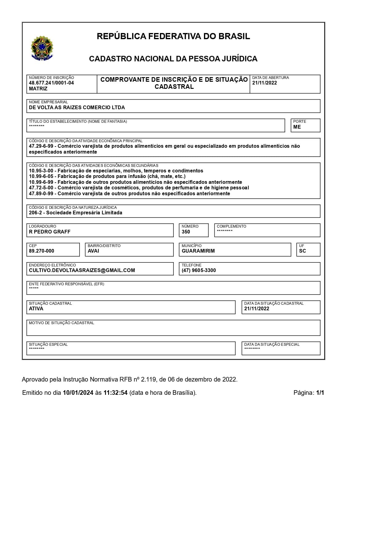 Nossa empresa, De Volta às Raízes Comércio LTDA, é a única que oferece acesso público a essas informações, garantindo total confiança e segurança em nossos produtos.