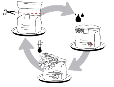 Pulverize o substrato 3 vezes por dia com o borrifador incluso desde o momento em que o abrir, Isso ajudará a manter a umidade adequada para o crescimento dos cogumelos.