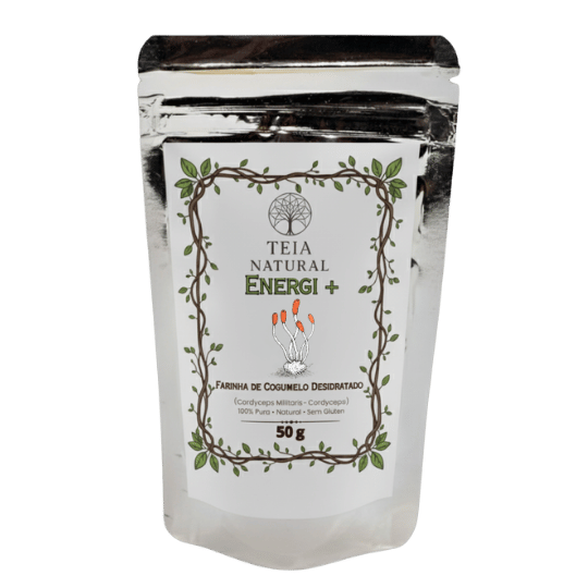 A Farinha Energy+ é obtida do corpo frutífero desidratado e moído do cogumelo Cordyceps militaris, preservando seus compostos naturais.